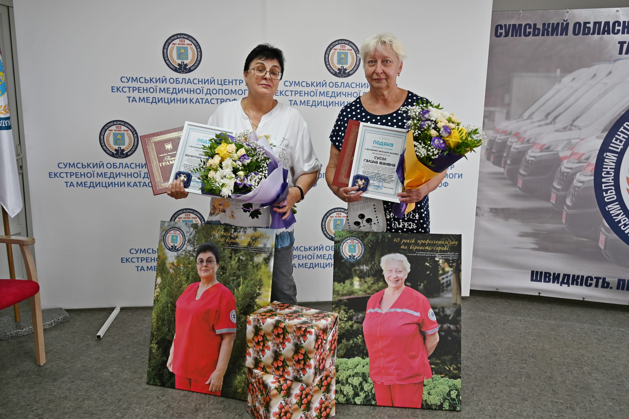 Також лікарки отримали подяки Сумського міського голови з нагрудним знаком, які вручила директор Сумського обласного Центру екстреної медичної допомоги та медицини катастроф Людмила Чегринець.