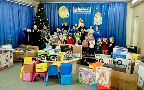 Також вихованцям центру вручили подарунки — мобільні телефони, смарт-годинники, іграшки, велосипеди, гідроборди та інші речі для навчання й дозвілля.