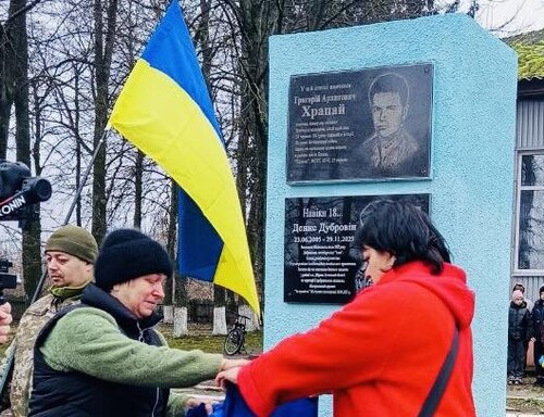 Почесне право відкрити Меморіальну дошку було надано його мамі Оксані Анатоліївні і бабусі Наталії Іванівні.