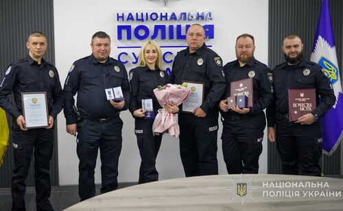 За проявлену мужність, самовідданість і професійні дії в умовах обстрілів поліцейських нагородили державними відзнаками Кабінету Міністрів України та відомчими нагородами. Вручення провели начальник ГУНП в Сумській області Олег Кашперук та керівник Угруповання стабілізаційних дій, заступник начальника Департаменту військової контррозвідки СБУ Сергій Прудченко.
