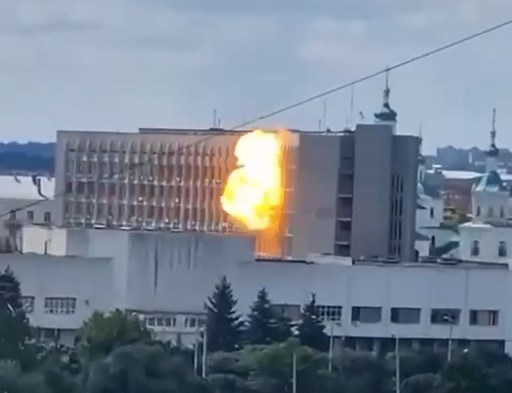 Момент прильоту БпЛА в центрі міста Суми виклав у своему Телеграм народний депутат Качура. Нагадуємо, що сьогодні, 26 липня, росіяни масово атакують обласний центр дронами.