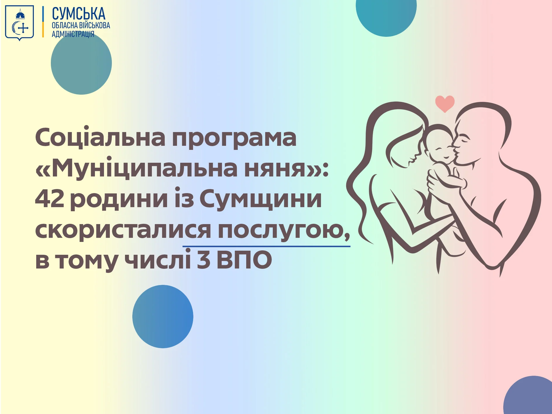 На Сумщині 42 родини є отримувачами послуги «муніципальна няня», у тому числі 3 родини ВПО.