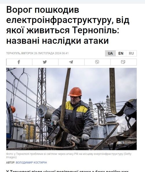 - У пості дійсно була розміщена світлина з працюючою людиною на об’єкті, схожому на енергетичний, але вона носила ілюстративний характер.