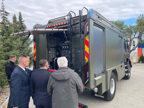 Під час зустрічі в м. Кельце представники компанії MOTO-TRUCK висловили підтримку громаді Сумщини, яка перебуває під постійними обстрілами. Розуміючи потреби рятувальних служб області, керівництво компанії ухвалило рішення безоплатно передати цей автомобіль.