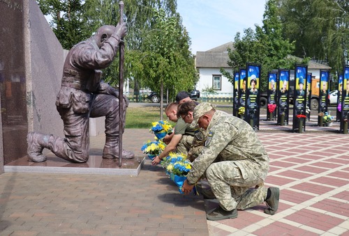 Церемонію покладання квітів до пам’ятного знаку «Захисникам України» та Алеї героїв, до Алеї історії та пам’яті, та до пам’ятного знаку на честь воїнів-визволителів – бійців 93 окремої механізованої бригади «Холодний яр» здійснили Тростянецький міський голова Юрій Бова, начальник відділення поліції №1 (м. Тростянець) Охтирського РВП ГУНП в Сумській області Олександр Гончаров, військовослужбовець 1 відділу Охтирського районного ТЦК та СП Владислав Заброда, бійці ДФТГ «Тростянець-1».