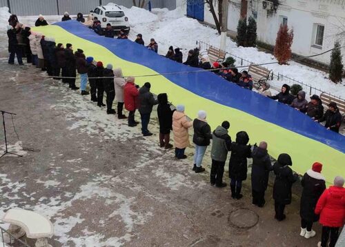 Для Есманської громади, яка щоденно відчуває подих війни через близькість до кордону, День Соборності – це не про офіційні промови, а про фізичне відчуття плеча поруч. Попри складні безпекові умови, жителі громади зібралися разом, щоб розгорнути величезне синьо-жовте полотно. Цей жест став потужним візуальним маніфестом: прикордоння було, є і буде невід’ємною частиною єдиної України.
