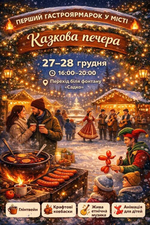 Тож запрошуємо усіх охочих у суботу та неділю до «Казкової печери» на перший гастрономічний ярмарок, де можна буде не лише посмакувати місцевими стравами та напоями, а й відчути святковий дух.