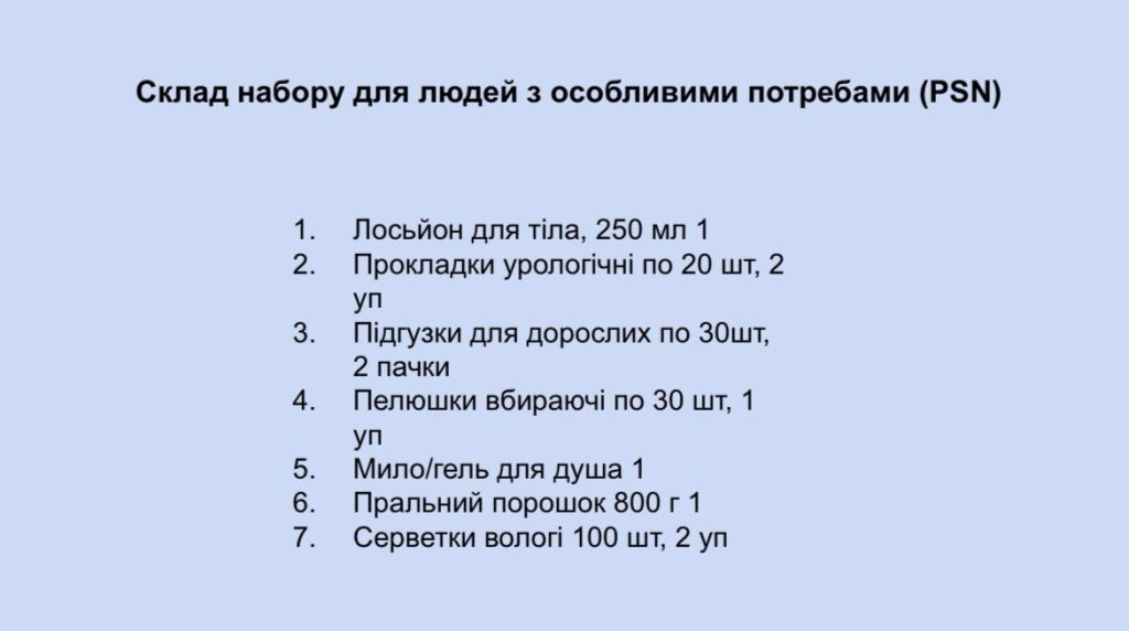 Набір для людей з особливими потребами (PSNмістять  підгузки розміру XL ) можуть отримати: