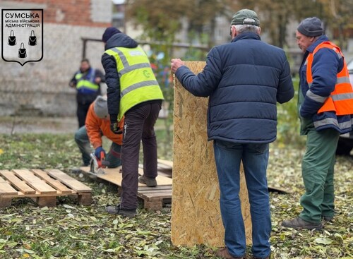 Комунальні служби та благодійники допомагають закривати вікна та балкони плівками і OSB-плитами.