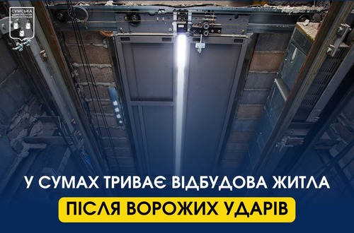 «Серед пріоритетних завдань, що стоять в переліку відновлювальних робіт, ліфти – невід’ємна складова інфраструктури житлового будинку. Облаштовуємо ліфти на тих постраждалих об’єктах, що є придатними для проживання, – пояснює начальник Сумської міської військової адміністрації Сергій Кривошеєнко. – Ми виділили кошти, необхідні для придбання ліфтового обладнання українського виробника: йдеться про 12 ліфтових комплексів».
