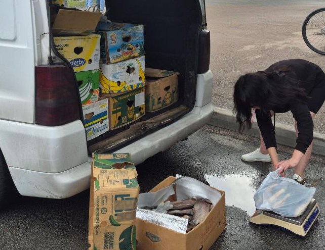 Накрапував дощ. У цей час жінка, яка привезла продукти до магазину (готові до вживання продукти, які не були в упаковці – авт), просто на проїжджій частині, фактично в калюжі, встановила ваги, голими руками перекладала продукти з ящиків у пакет, зважувала її та заносила до магазину.