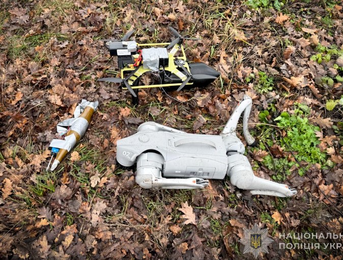 Ворожий безпілотник квадрокоптерного типу, що ніс на собі заряд вибухівки, було виявлено в лісосмузі поряд з дорогою. Аби не постраждати самим та з безпечної відстані дослідити знахідку, співробітники управління вибухотехнічної служби ГУНП в Сумській області скористалися допомогою робота-собаки.