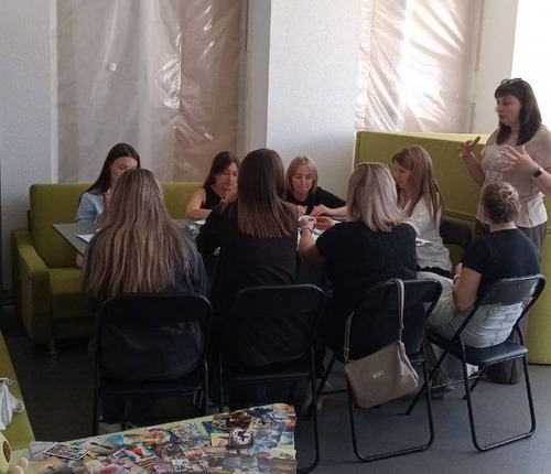 Психологині Катя Хрокало та Оксана Романюк ДПТНЗ опрацьовували з учасниками внутрішній світ людини через творчість. Арт-терапевтичні вправи дали можливість присутнім відчути, що навіть найпростіші дії — малювання, робота з кольорами — можуть допомогти зняти напруження і знайти внутрішній баланс.