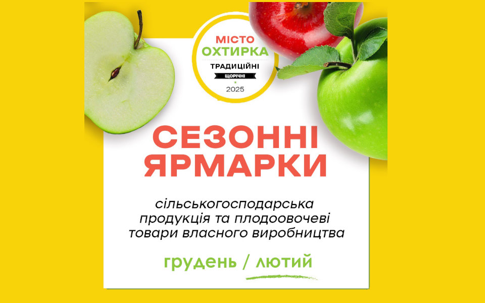 З 1 грудня 2025 року до 28 лютого 2026 року в Охтирці триватиме сезонний ярмарок із продажу сільськогосподарської продукції та плодоовочевих товарів власного виробництва