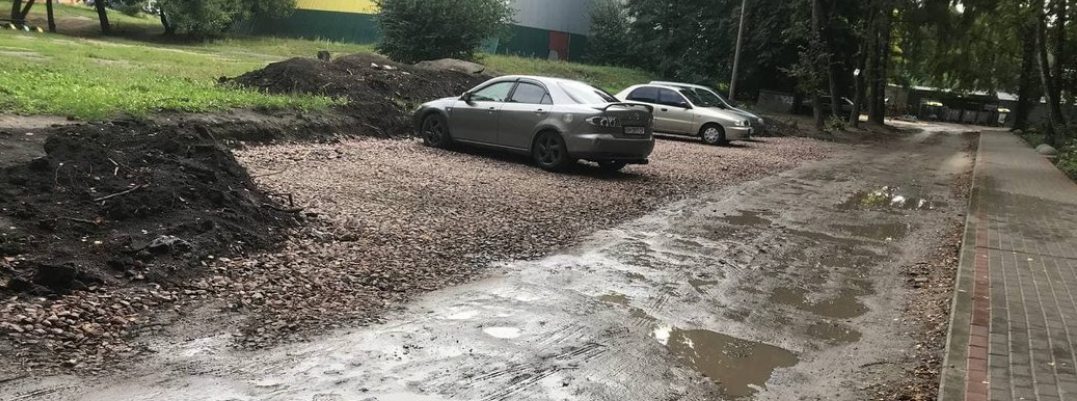 Ремонтувати двір біля будинків №41 та 43 на Ковпака почали 9 червня. За словами місцевої мешканки Людмили Доценко, будівельники працювали місяць. За цей час зробили тротуари, підходи до під’їздів та уклали паркувальні місця щебенем. Потім бригада поїхала.