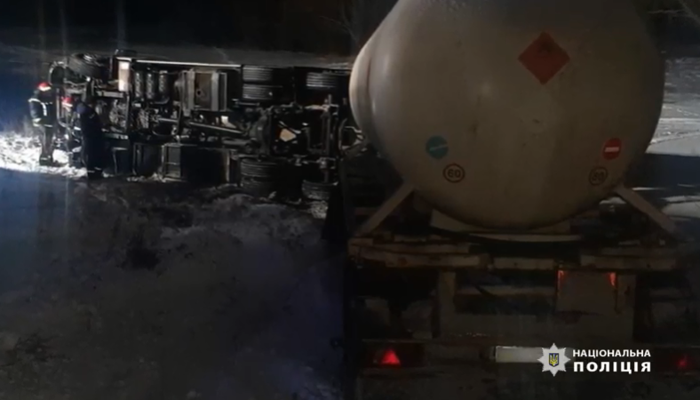На автодорозі неподалік від Охтирки вантажний автомобіль з причепом, що перевозив небезпечний вантаж, з’їхав на узбіччя та перекинувся на бік. Під час пригоди ніхто не постраждав.